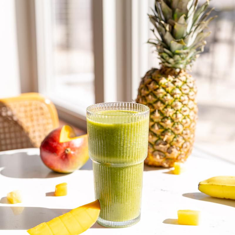 A dairy-free, healthy blend of greens, mango, pineapple, and banana, finished with crisp apple juice for natural sweetness.