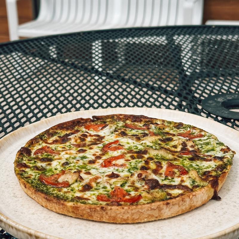 Chicken Pesto: chicken | mozzarella | basil pesto | Roma tomatoes